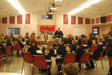 Representative Smith joins with about 100 FFA members from Eastern Oregon. Rep. Smith discussed the importance of FFA and the positive effects it has on our next generation.